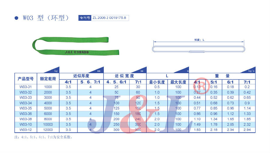 巨力索具吊裝帶制造總廠是世界最大吊裝帶制造基地,年產量達20000t以上,擁有世界上最先進的制造設備千余臺套,包括瑞士繆勒織機、德國染整機、日本全自動縫紉機等。目前可生產額定載荷0.5t-2000t,長度0.5m-100m不同規格型號的吊裝帶產品。可根據客戶需求制作4、5、6、7倍安全系數的吊裝帶。